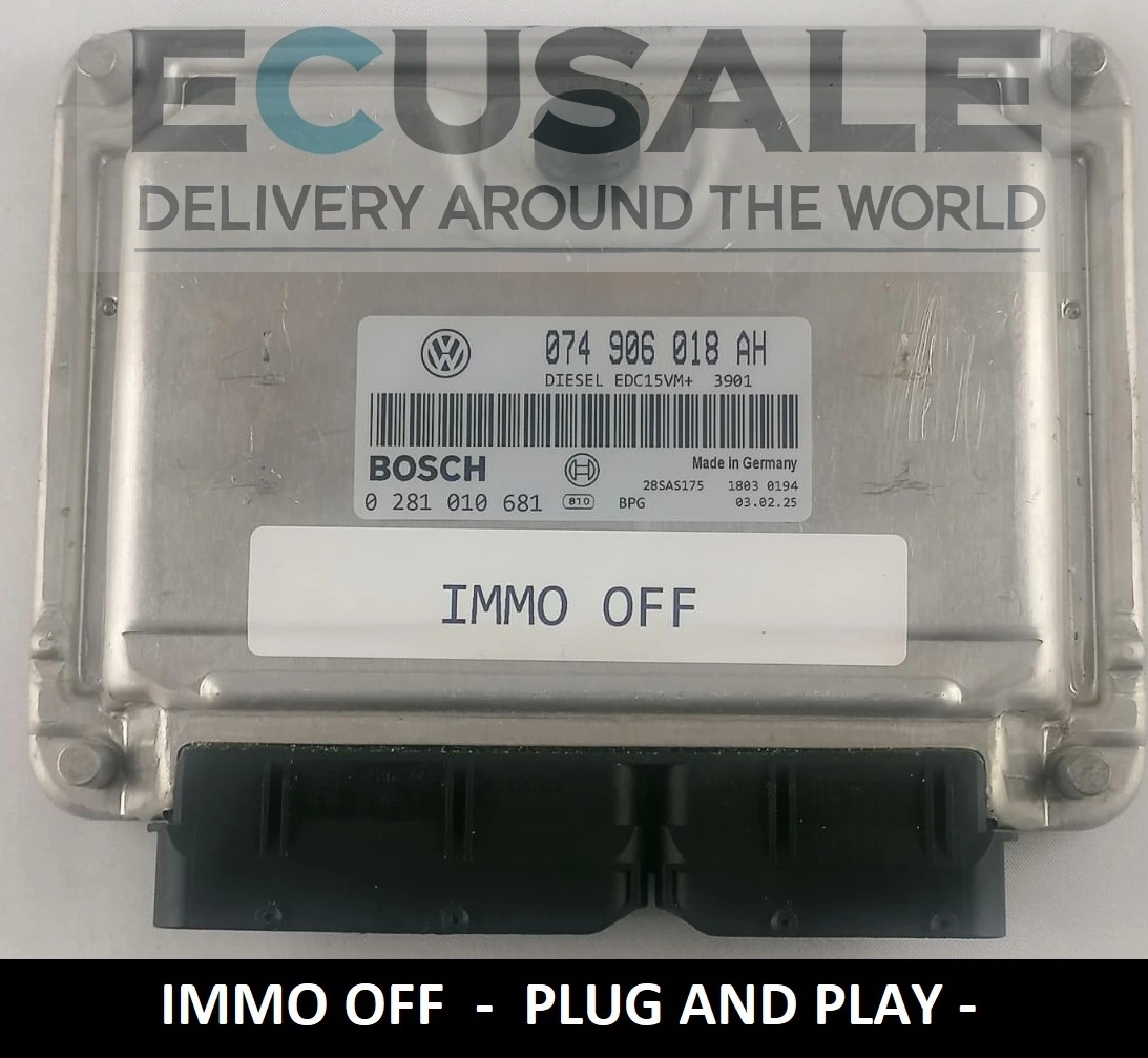 Das angebotene MOTORSTEUERGERÄT 0281010681 / 074906018AH ist ein originales Bosch-Modul, vorbereitet in der Version IMMO OFF, wodurch es als Plug & Play funktioniert. Nach dem Einbau ist keine Codierung der Wegfahrsperre, keine Schlüsselprogrammierung und keine zusätzliche Anpassung im Fahrzeug erforderlich.