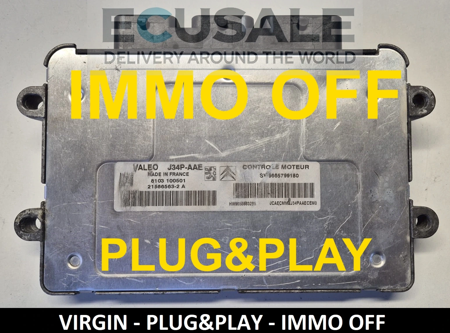Originales J34P-Motorsteuergerät für Peugeot und Citroën, erhältlich in der Version VIRGIN oder IMMO OFF – bereit für Plug&Play-Einbau.