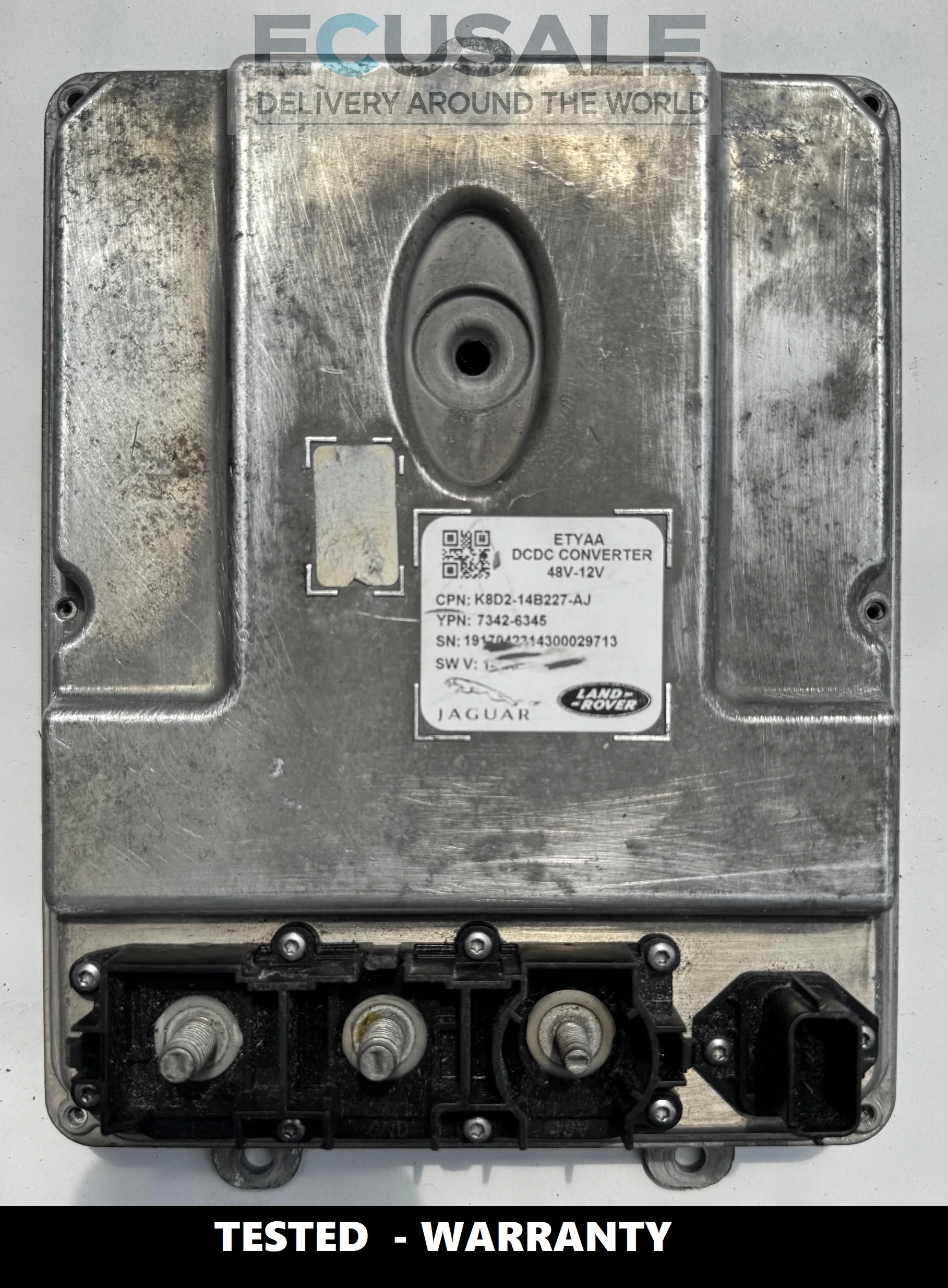 We present the 48V mHEV hybrid battery module identified by part numbers K8D214B227AJ and K8D2-14B227-AJ. This component is used in the latest Land Rover mild-hybrid (MHEV) systems. The module is intended for vehicles produced between 2019–2024, working with both petrol and diesel engines equipped with a 48-volt system.