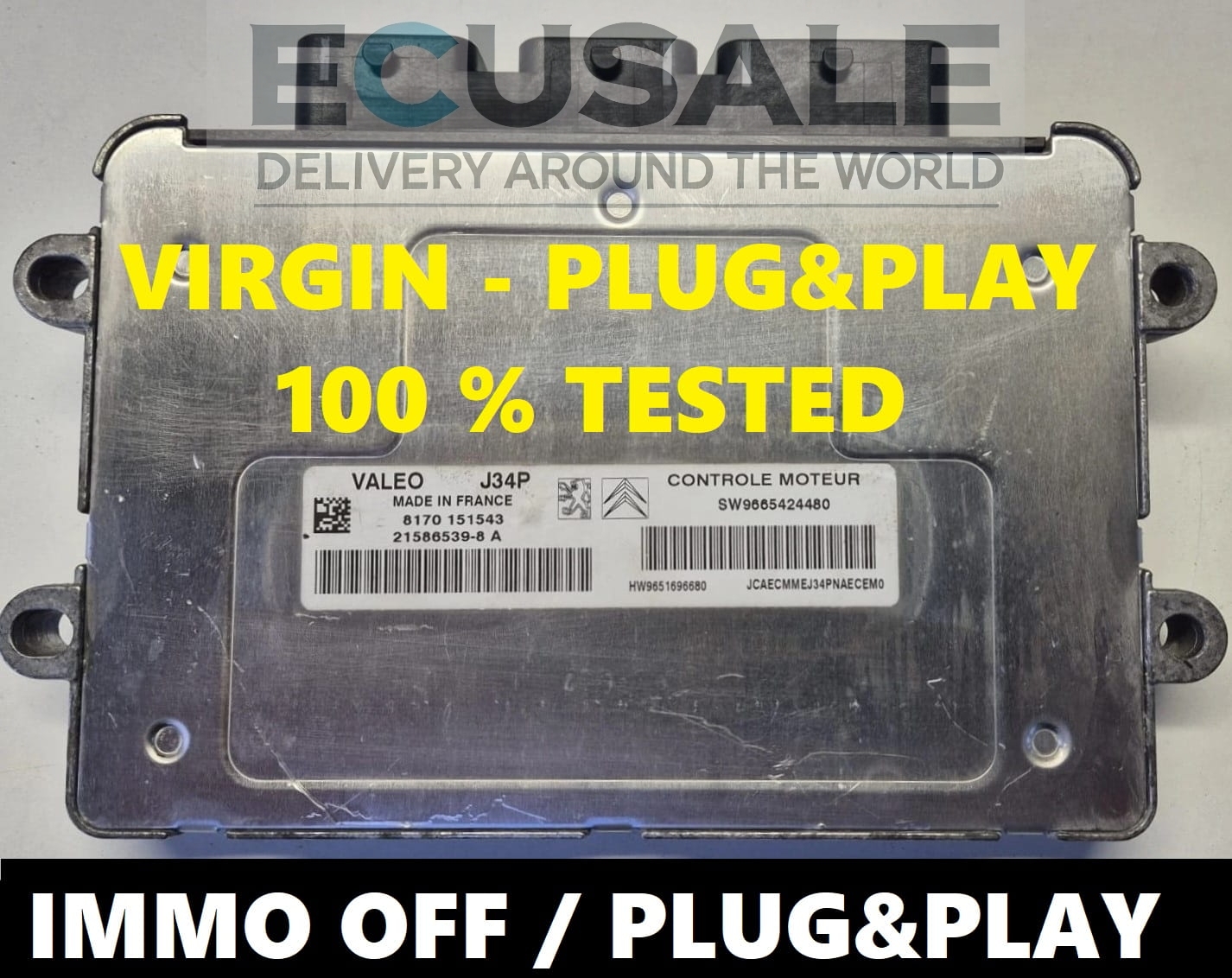 The offered engine control unit with part numbers 21586539-8A and 9665424480 is a tested unit used in Peugeot and Citroën vehicles . The VIRGIN / IMMO OFF version means the control unit is fully unlocked from the immobiliser and does not require programming or adaptation after installation.