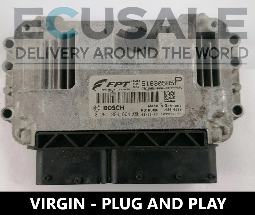 This engine ECU with reference 51830585P, based on Bosch 0261S04664 hardware, has been prepared in VIRGIN mode – all previous data has been wiped, making it ready to adapt to a new vehicle.