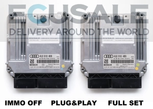 Conjunto de 2× centralitas de motor para Audi Q7 4.2 TDI en versión IMMO OFF Plug&Play, disponible únicamente con la compra de dos unidades, que deben instalarse simultáneamente en un solo vehículo y no requieren programación.