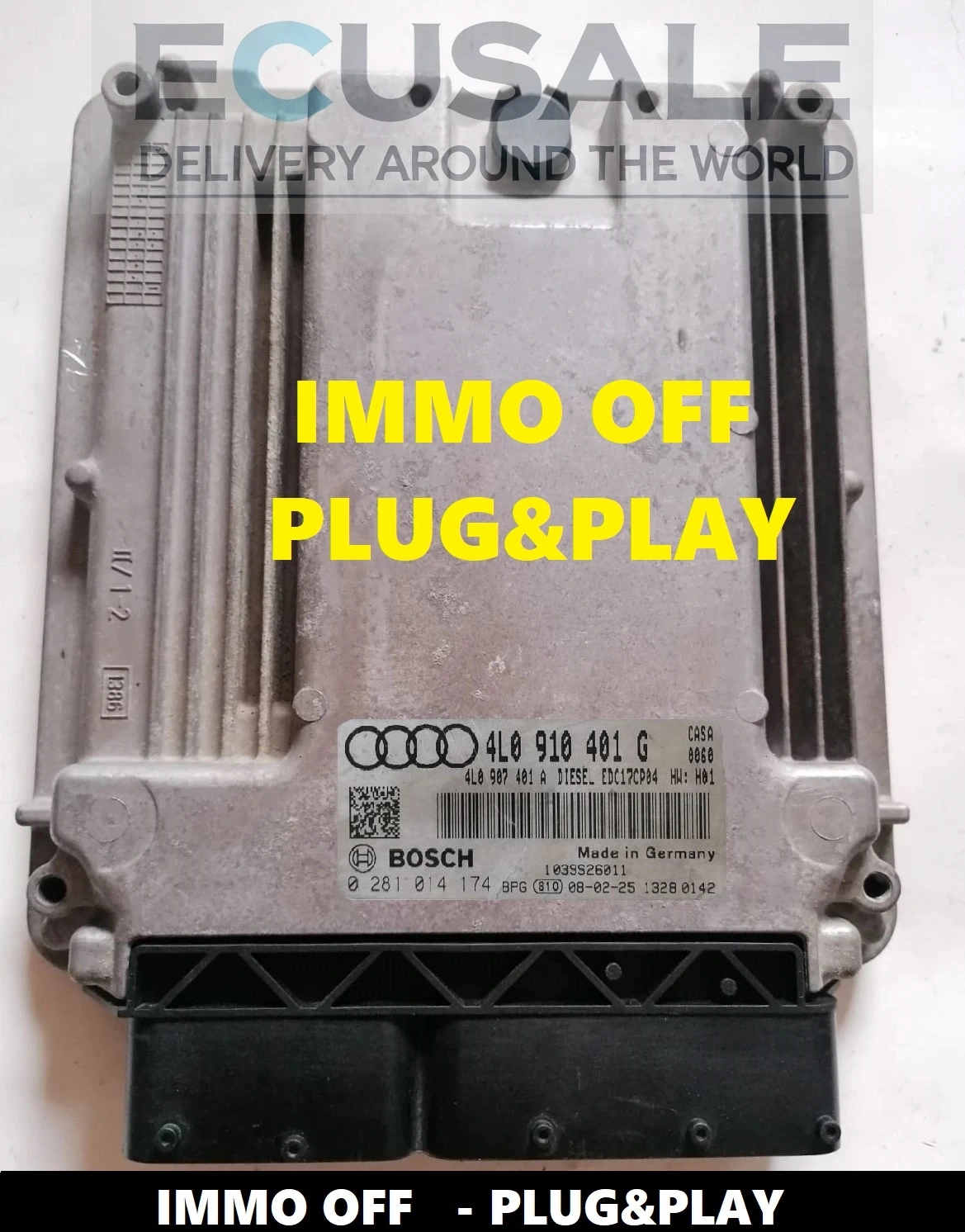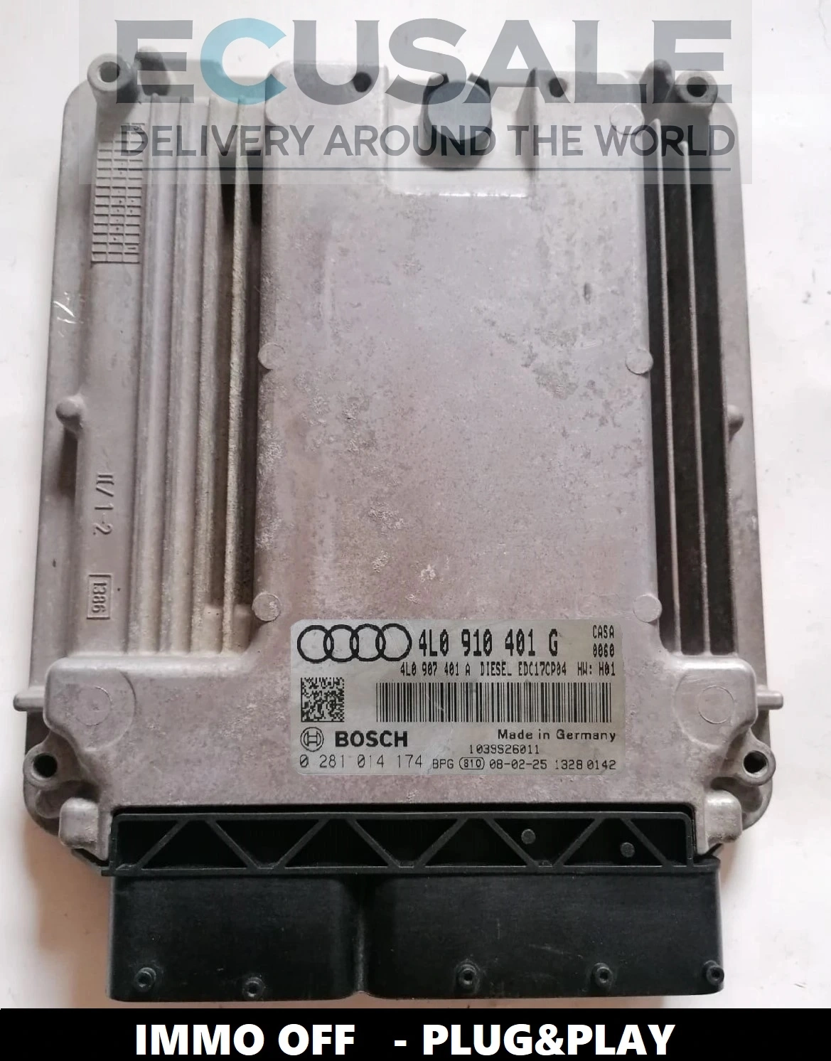 Ofrecemos una centralita de motor Audi Q7 3.0 TDI comprobada con las referencias 0281014174, 4L0910401G y 4L0907401A, preparada en versión IMMO OFF. La unidad funciona inmediatamente tras su instalación – sin programación del inmovilizador, sin clonación de datos ni procedimientos online, siendo un reemplazo ideal de la ECU original dañada.
