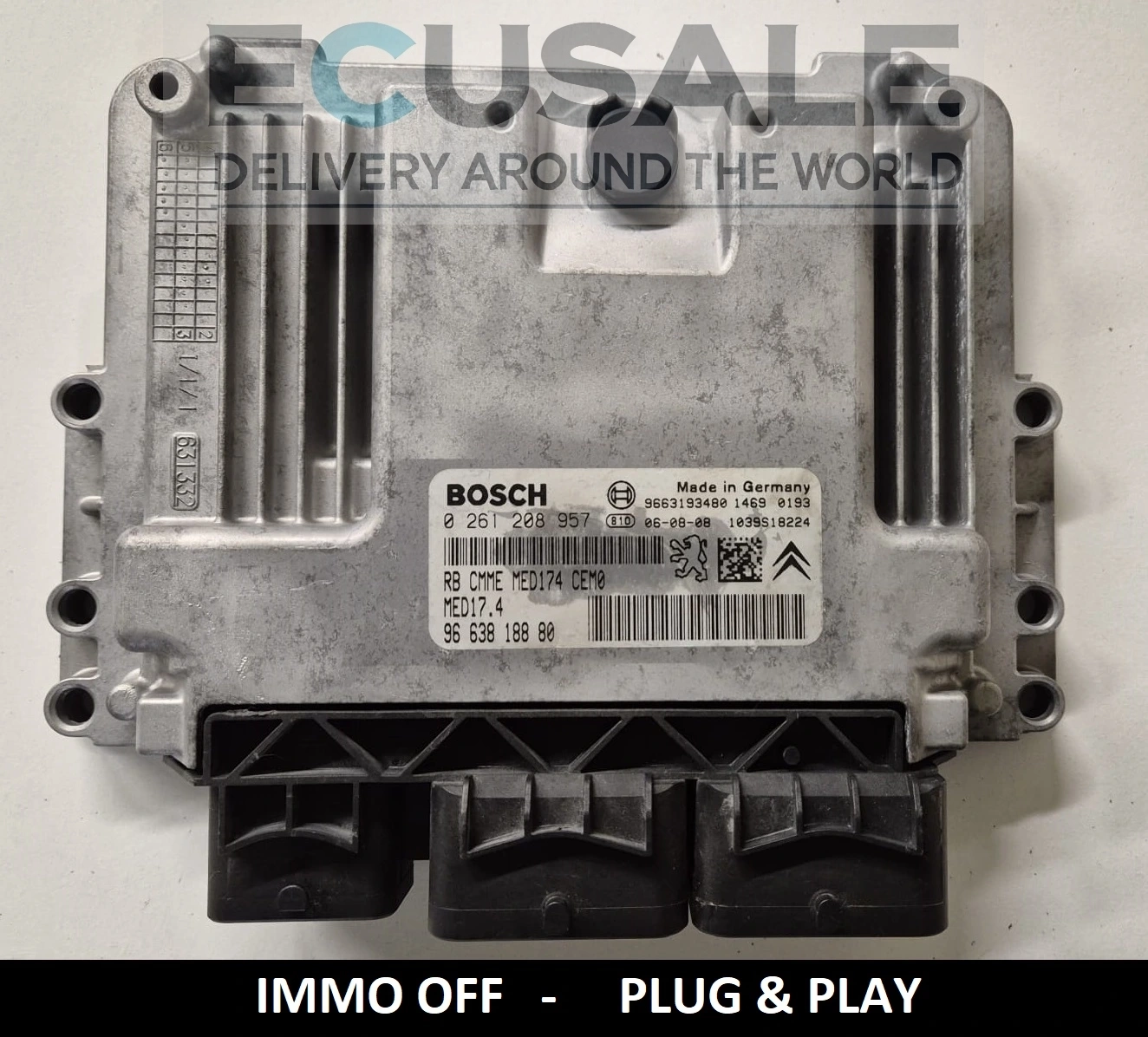 0261208957 9663818880 Centralita de motor IMMO OFF MED17.4 PEUGEOT 207 CITROEN C4 1.6