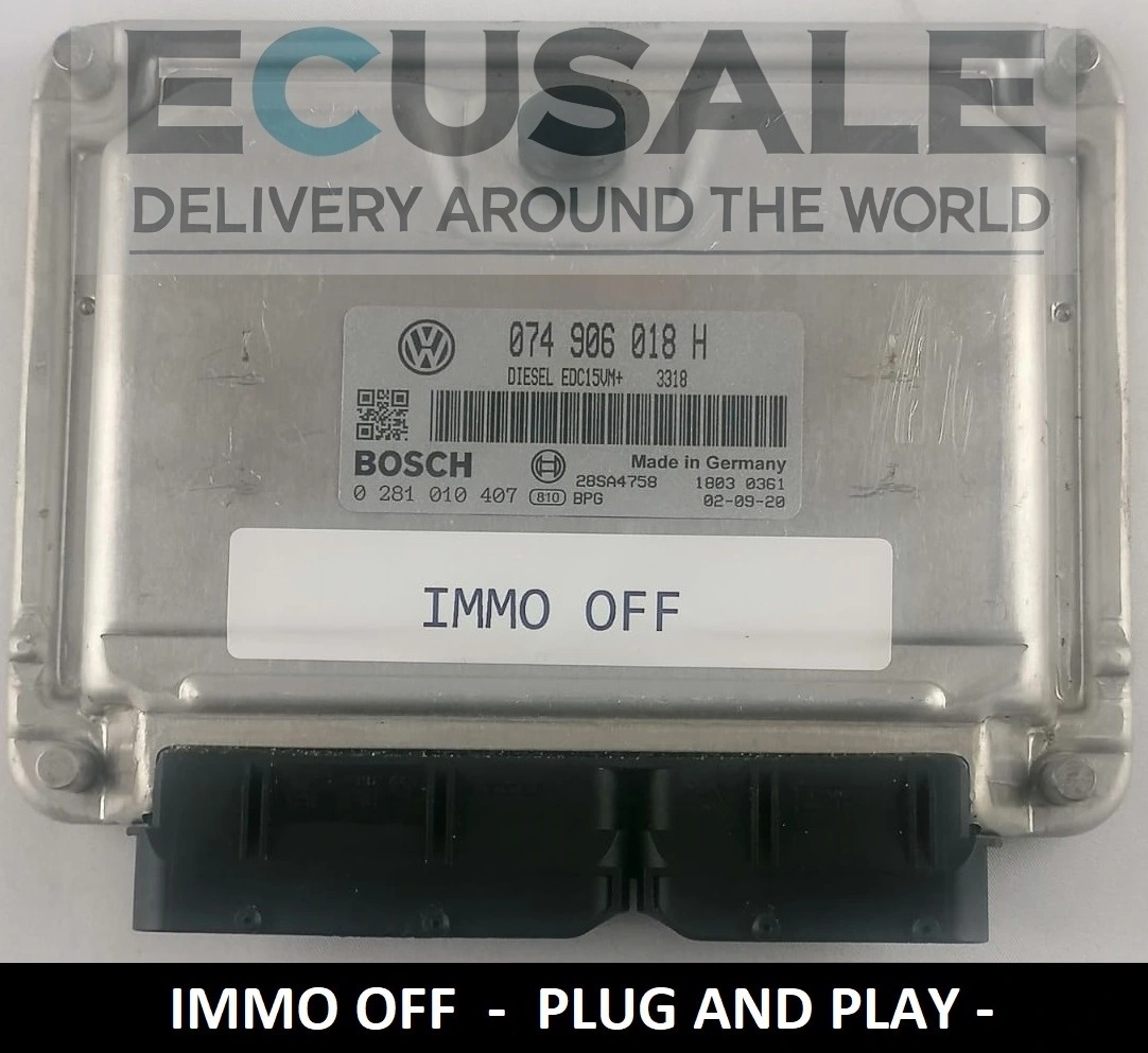 Cada centralina 0281010407 / 074906018H foi testada em bancada e em veículo de teste, garantindo total funcionalidade. A versão IMMO OFF permite instalação rápida em modo Plug & Play – sem necessidade de PIN ou adaptação do imobilizador.