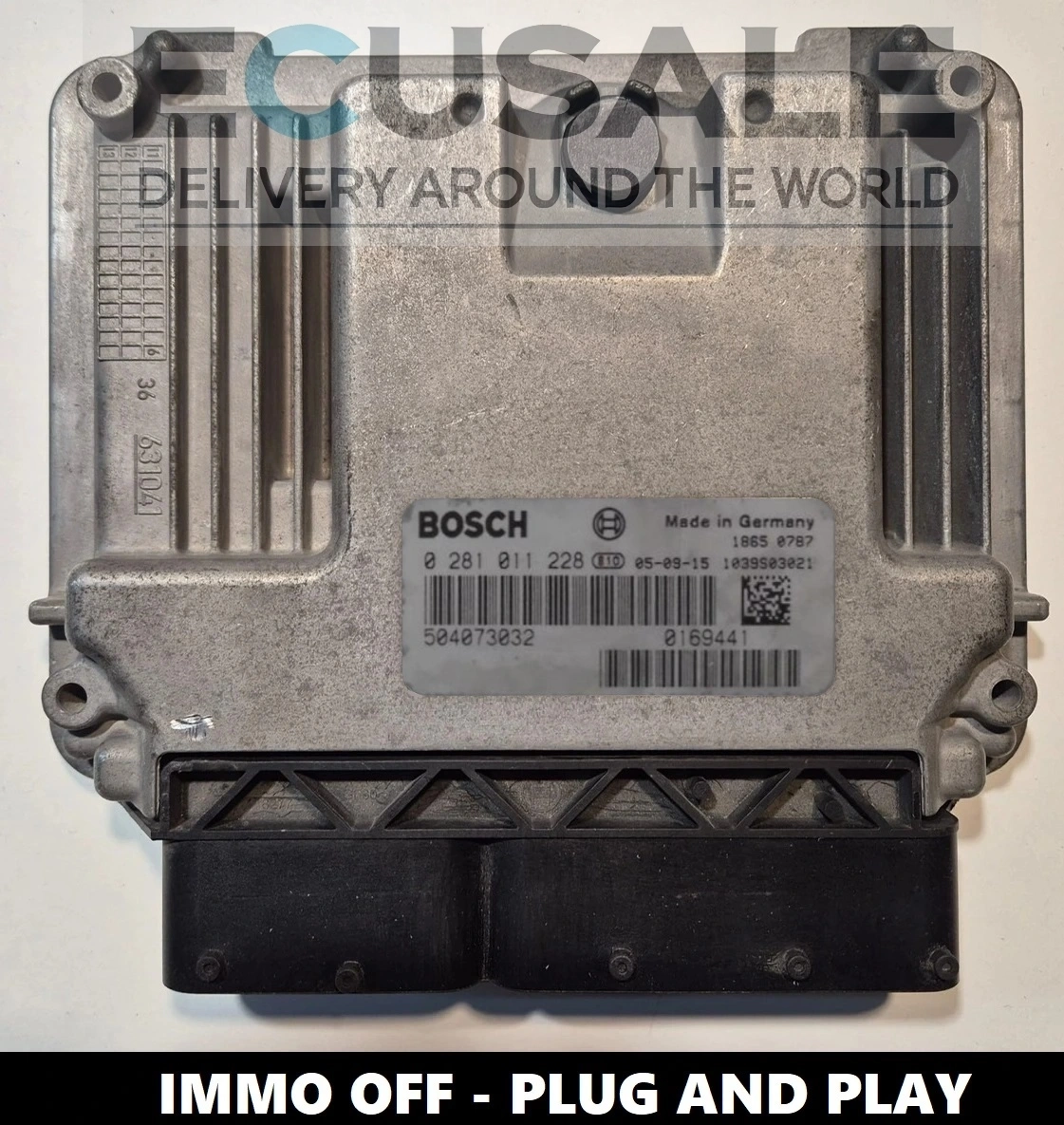 Centralina de motor 0281011228 / 504073032 destinada a veículos IVECO Daily com motores HPI. A unidade é fornecida na versão IMMO OFF, pelo que não requer programação, codificação nem adaptação após a montagem — pronta a usar em modo Plug & Play.