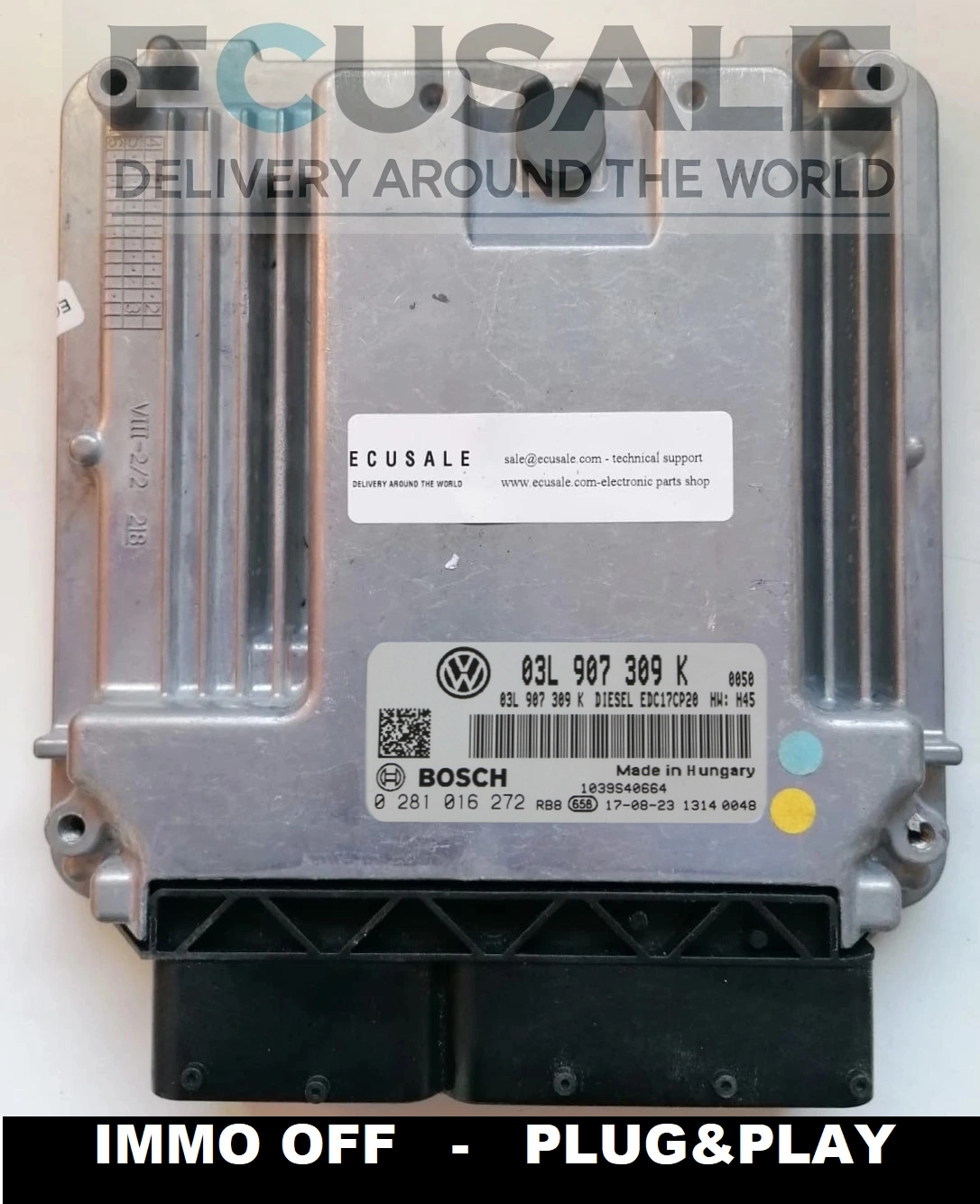 A unidade com os números 0281016272 e 03L907309K foi preparada em modo IMMO OFF Plug&Play. Isto permite colocar o veículo a trabalhar sem codificação de chaves, adaptação online ou sincronização com outros módulos. A centralina de motor é testada antes do envio e está pronta para instalação.