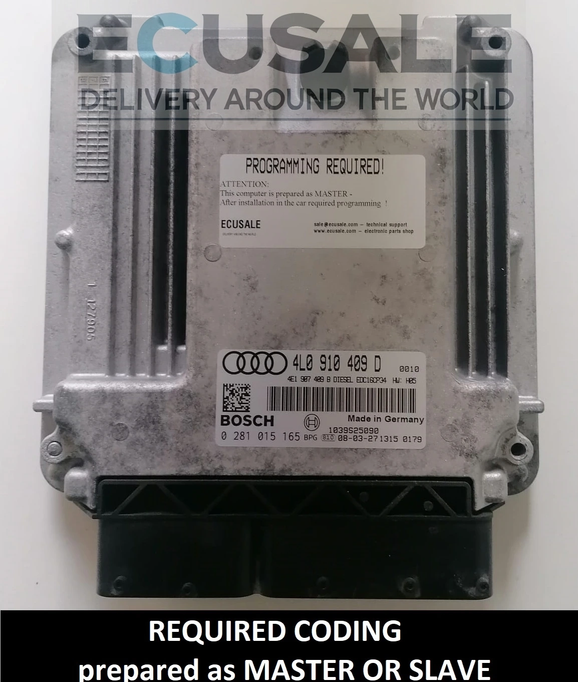 A centralina está pronta para instalação e programação utilizando equipamentos de diagnóstico originais da Audi (VAS, ODIS). Após a instalação, é necessário realizar a adaptação ao veículo, por exemplo através da clonagem dos dados da ECU antiga ou da codificação online.