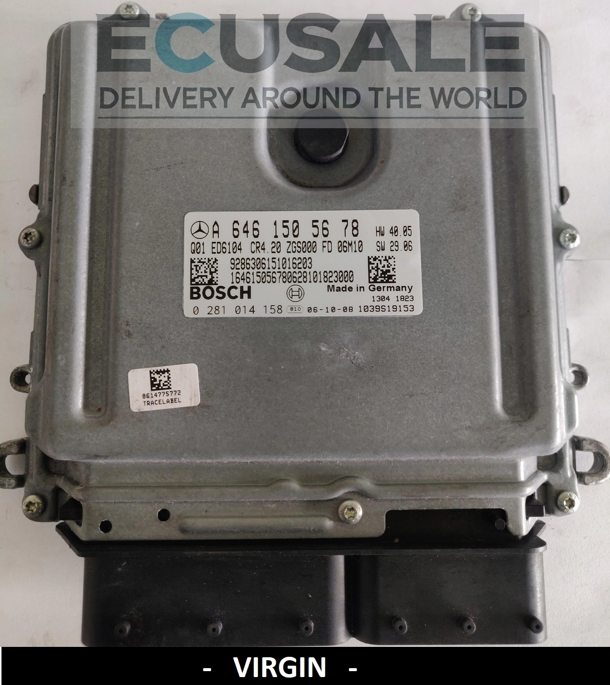 A centralina de motor A6461505678 na versão VIRGIN significa que não contém quaisquer dados de um veículo anterior, como VIN, dados do imobilizador ou configuração do veículo. Está preparada como uma unidade nova e pronta para a primeira atribuição.