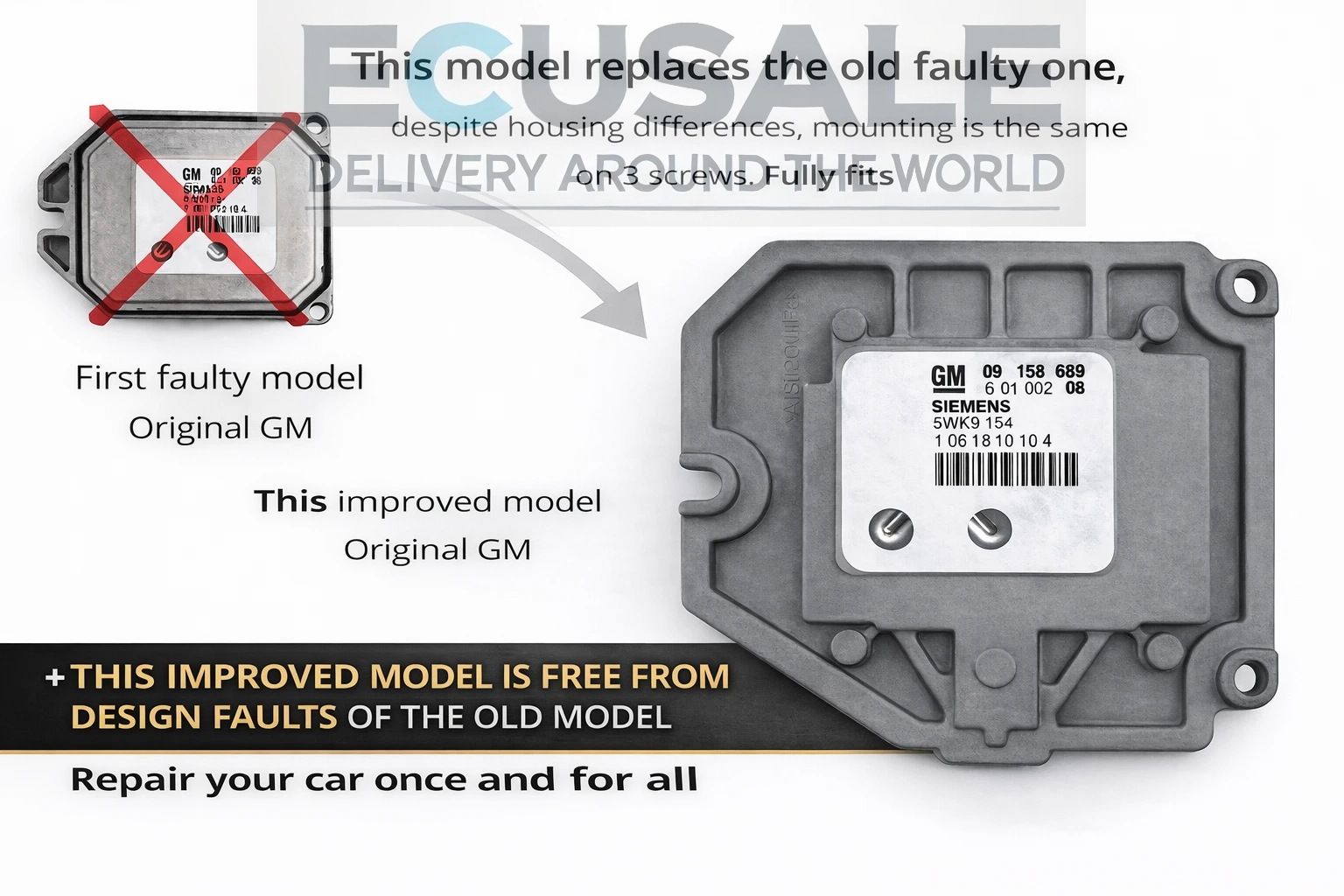 Oferecemos uma versão mais recente e melhorada da CENTRALINA DO MOTORE GM 09158689 / Siemens 5WK9154, desenvolvida como substituição direta do modelo antigo, mais sujeito a falhas. Esta versão possui uma carcaça modernizada e uma construção interna melhorada, aumentando significativamente a durabilidade e a fiabilidade.