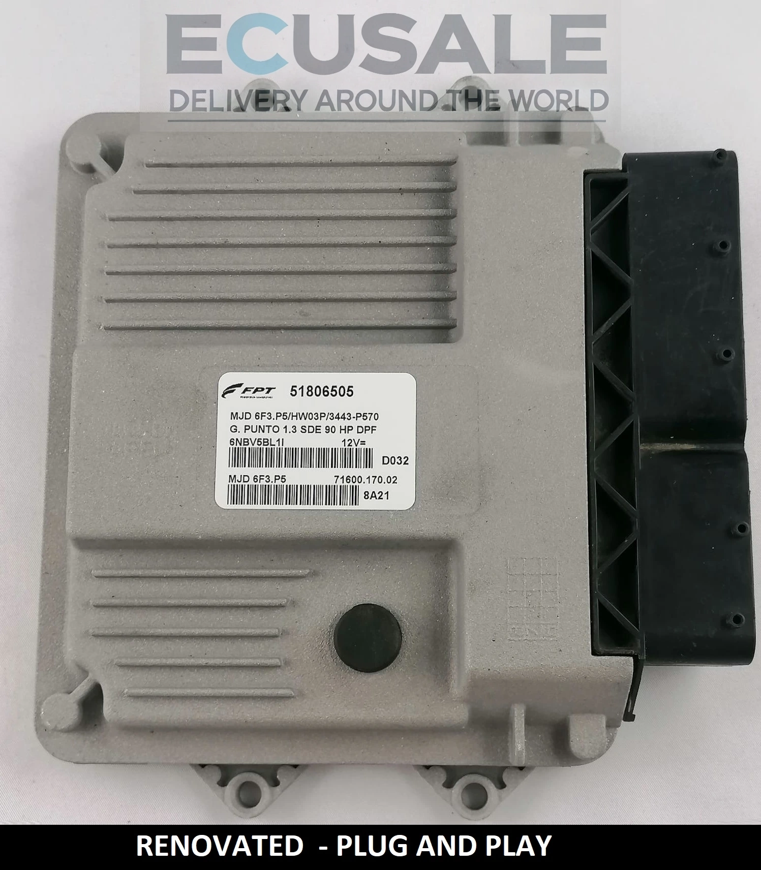 51806505 renovado centralina do motor MJD6F3.P5 HW03P MJD6F3.P5 FIAT 1.3